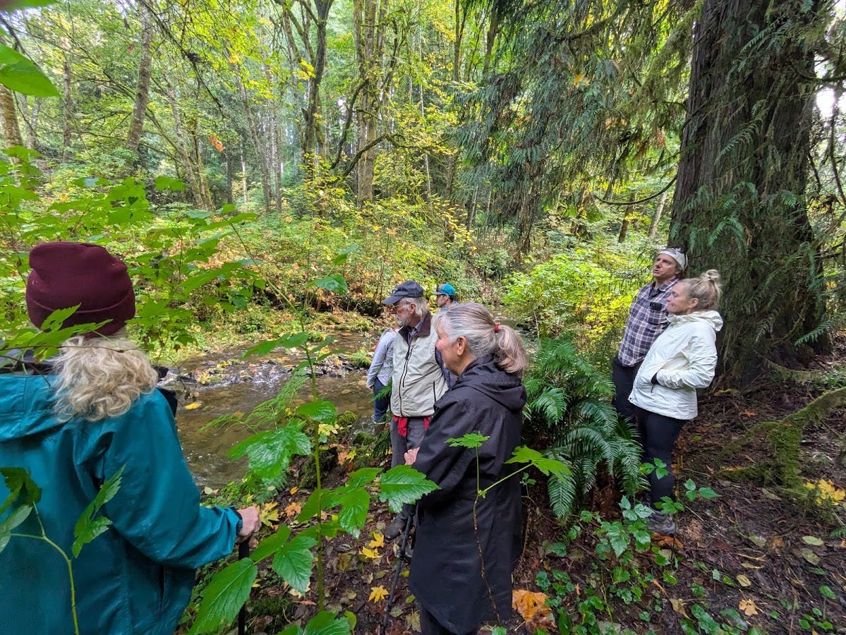 About 50 years ago, Robbie and Jim Mantooth bought property up Del Guzzi road bordering Ennis Creek. They fell in love with the land and the stream and began actively working to protect it. They restored the creek on their property with logs and plantings. They put part of their property into a Conservation Easement through North Olympic Land Trust. But they went beyond that, creating the group “Friends of Ennis Creek.” The group sponsors booths at events, hikes on the creek, letter-writing campaigns, and generally works to build community support for improving the creek.
